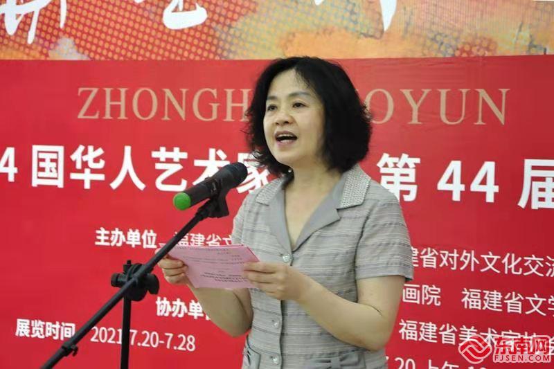 福建省文聯(lián)黨組書記、書記處書記、副主席王秋梅致辭 王秋梅在致辭中說(shuō),本次參展作品立意新穎、風(fēng)格多樣、內(nèi)容豐富,既是廣大海外藝術(shù)家書畫造詣的精彩呈現(xiàn),是他們以書言志、以畫傳情,同心共圓中國(guó)夢(mèng)的赤子情懷,也是他們?yōu)榈?4屆世界遺產(chǎn)大會(huì)送上的美好祝福和深情獻(xiàn)禮。她期待,海內(nèi)外僑界藝術(shù)家創(chuàng)作更多精品佳作,進(jìn)一步弘揚(yáng)中華優(yōu)秀傳統(tǒng)文化,讓世界看見福建之美、中華之韻,同心共筑中國(guó)夢(mèng)。福建省文聯(lián)將為海內(nèi)外藝術(shù)家提供更多交流互動(dòng)的平臺(tái)和空間,增強(qiáng)海外華僑華人與祖(籍)國(guó)的聯(lián)系,推動(dòng)福建與世界各國(guó)全方位、多領(lǐng)域的文化交流。