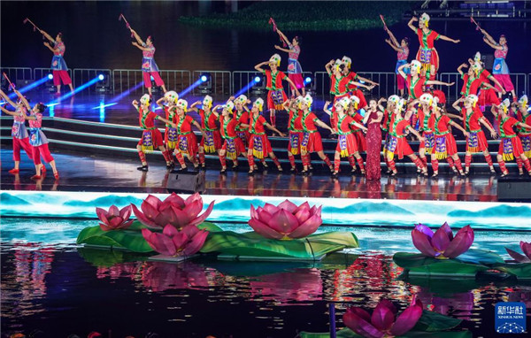 9月16日,演員在開燈儀式上表演《海的兩邊都是家》。