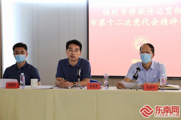 福州市僑聯黨組書記林高星講話(中),市僑聯黨組成員、副主席李清華主持會議(右) 福州市僑聯黨組書記林高星出席會議并講話。他說,剛剛閉幕的市黨代會明確指出,“要用足用好僑的資源和優勢,大力推進‘回歸工程’‘留根工程’,更好地凝聚僑心、匯聚僑力”,為僑聯和僑界今后的工作、事業指明了方向。他對福州全市各級僑聯和僑界提出了三點要求:一是要深入學習黨代會精神,切實深化政治引領,把學習貫徹市十二次黨代會精神特別是林寶金書記所作的工作報告精神,作為當前和今后一個時期僑聯工作的重要政治任務,學深學透,抓牢抓實;二是要通過僑聯干部和僑界人大代表、政協委員,向廣大海內外僑胞宣傳黨代會精神,掀起學習宣傳的高潮;三是要通過學習貫徹市黨代會精神進一步激發僑界動力,匯聚僑心僑智僑力,最大限度地團結凝聚起廣大海外榕籍鄉親和國內歸僑僑眷中蘊藏的豐富資源和巨大力量,為實現黨代會確定的目標任務努力奮斗,為全方位加快建設現代化國際城市貢獻僑界新的更大的力量。