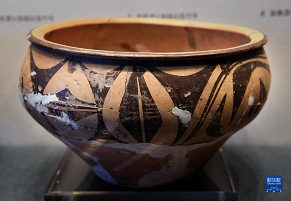 這是仰韶文化博物館內的展品“彩陶盆”(10月15日攝)。新華社記者 李安 攝