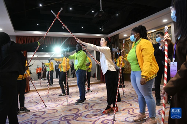 10月19日,中非青年體驗京劇。新華社記者 金良快 攝