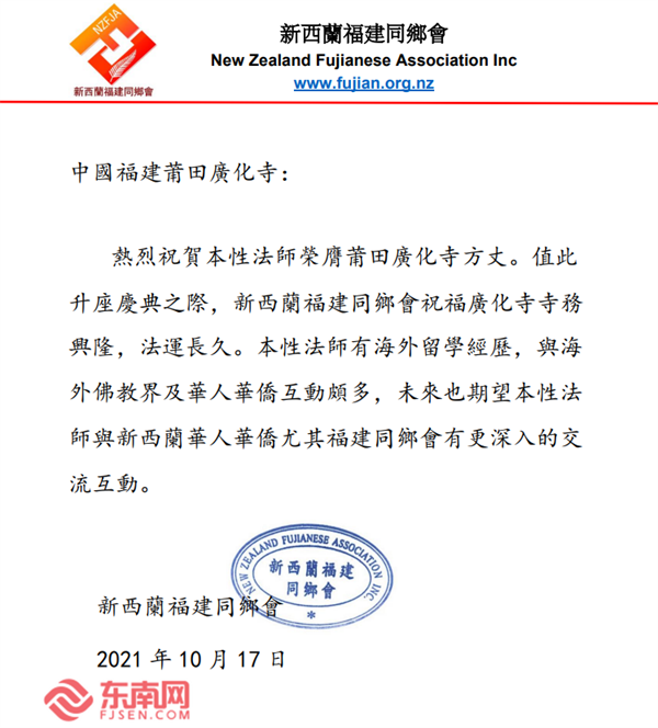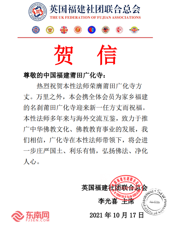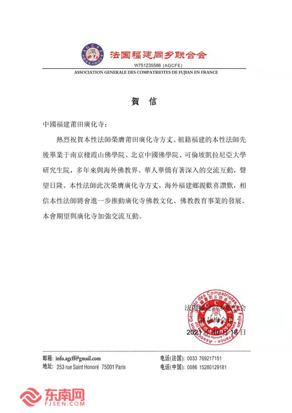 法國福建同鄉(xiāng)聯(lián)合會賀信