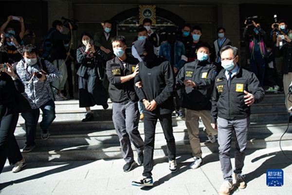 11月28日,澳門特區政府司法警察局人員押送一名嫌犯。